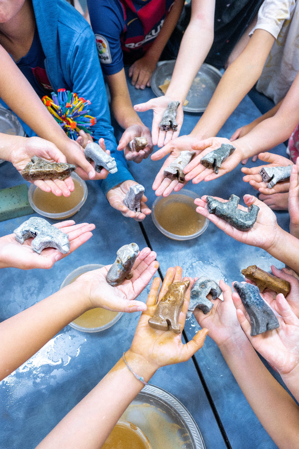 How to make the world of stone sculpture accessible to elementary school students? Stone is hard, unforgiving, requiring strength, focus, training and lots of tools. It takes years to master this skill.